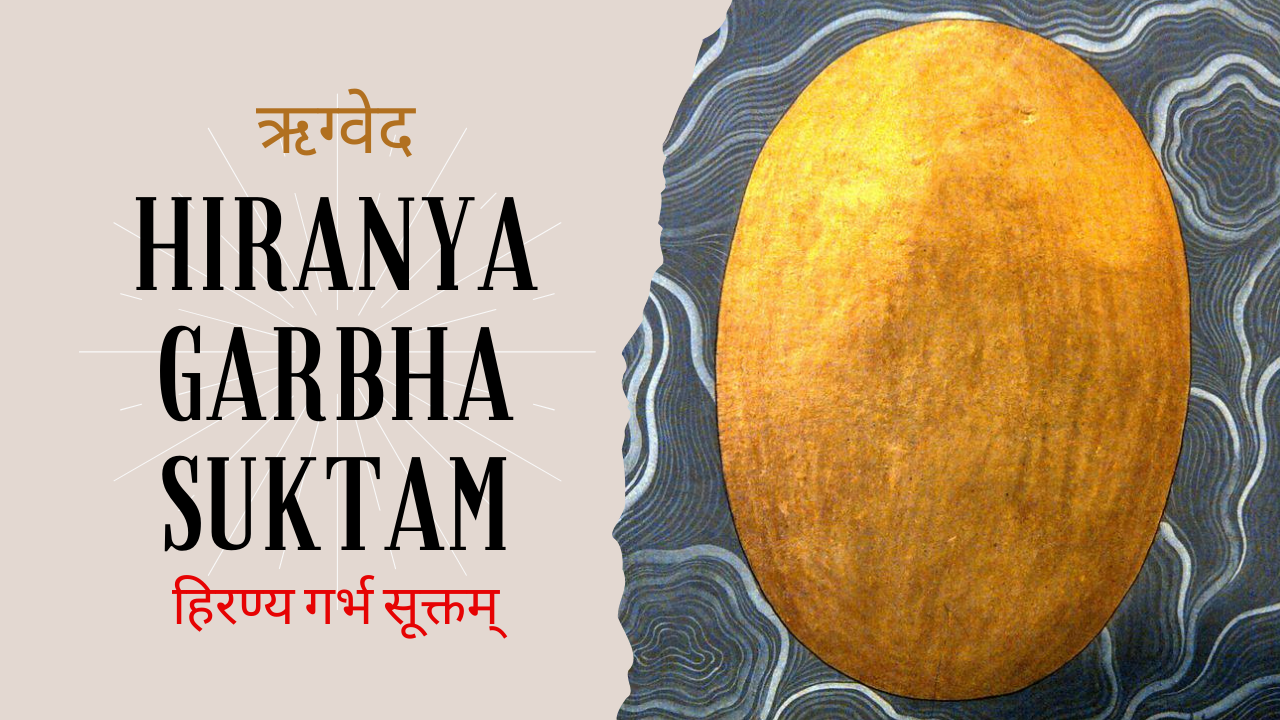 अतः हिरण्यगर्भ सूक्तम् का शाब्दिक अर्थ है “स्वर्णिम गर्भ (ब्रह्मांड के मूल कारण) की स्तुति।”
