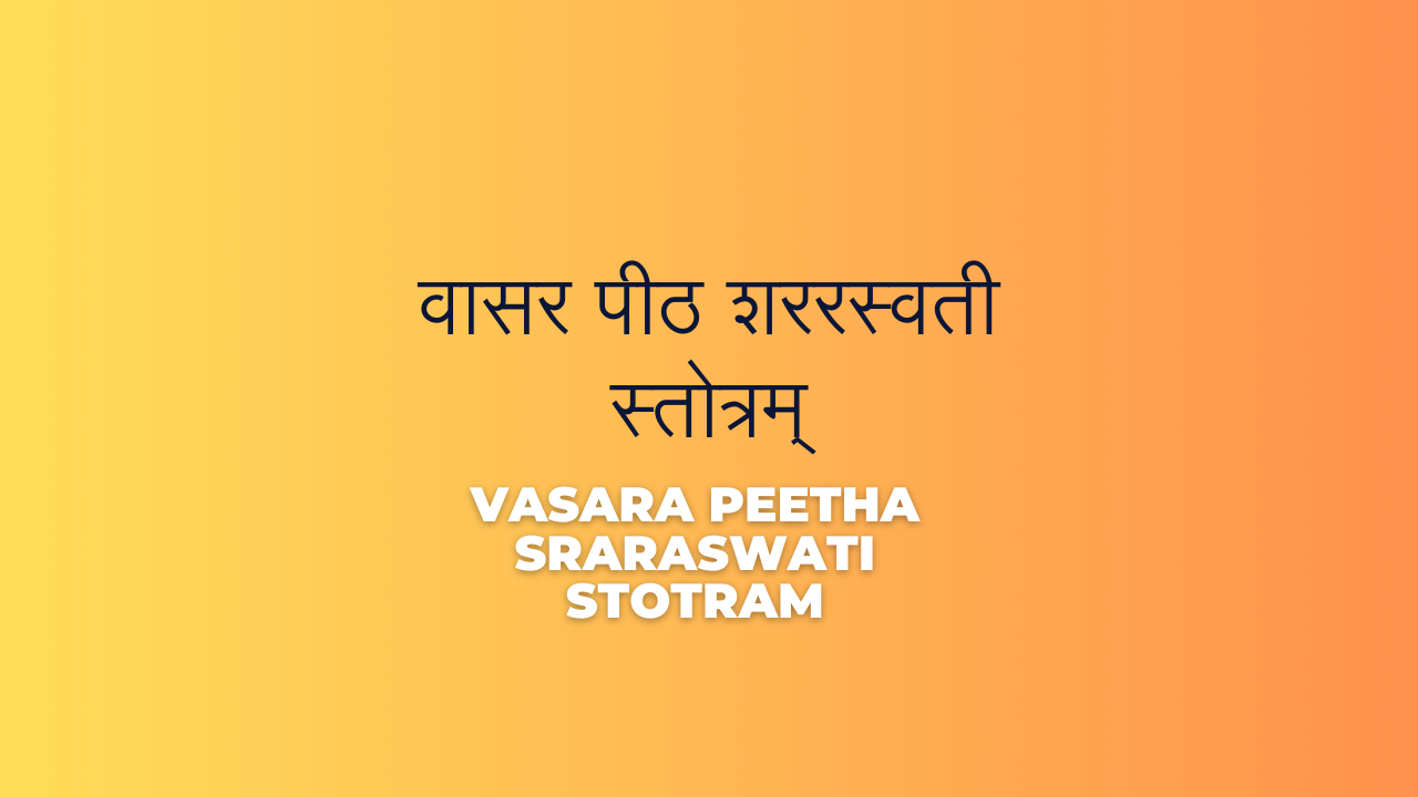 Vasara Peetha Sraraswati Stotram देवी सरस्वती की स्तुति में रचित एक प्राचीन और पवित्र स्तोत्र है। यह स्तोत्र देवी सरस्वती के ज्ञान, संगीत, कला और सृजनात्मकता के दिव्य स्वरूप का वर्णन करता है। ऐसा माना जाता है कि इस स्तोत्र का पाठ करने से मन की शुद्धता, स्मरण शक्ति तथा रचनात्मकता में वृध्दि होती है और विद्या व ज्ञान के मार्ग में आने वाले सभी बाधाएँ दूर होती हैं। देवी सरस्वती को भारतीय परंपरा में ज्ञान, बुद्धिमत्ता, संगीत और कला की देवी के रूप में पूजा जाता है। वासर पीठ शररस्वती स्तोत्रम् का नाम दो महत्वपूर्ण तत्वों को दर्शाता है: